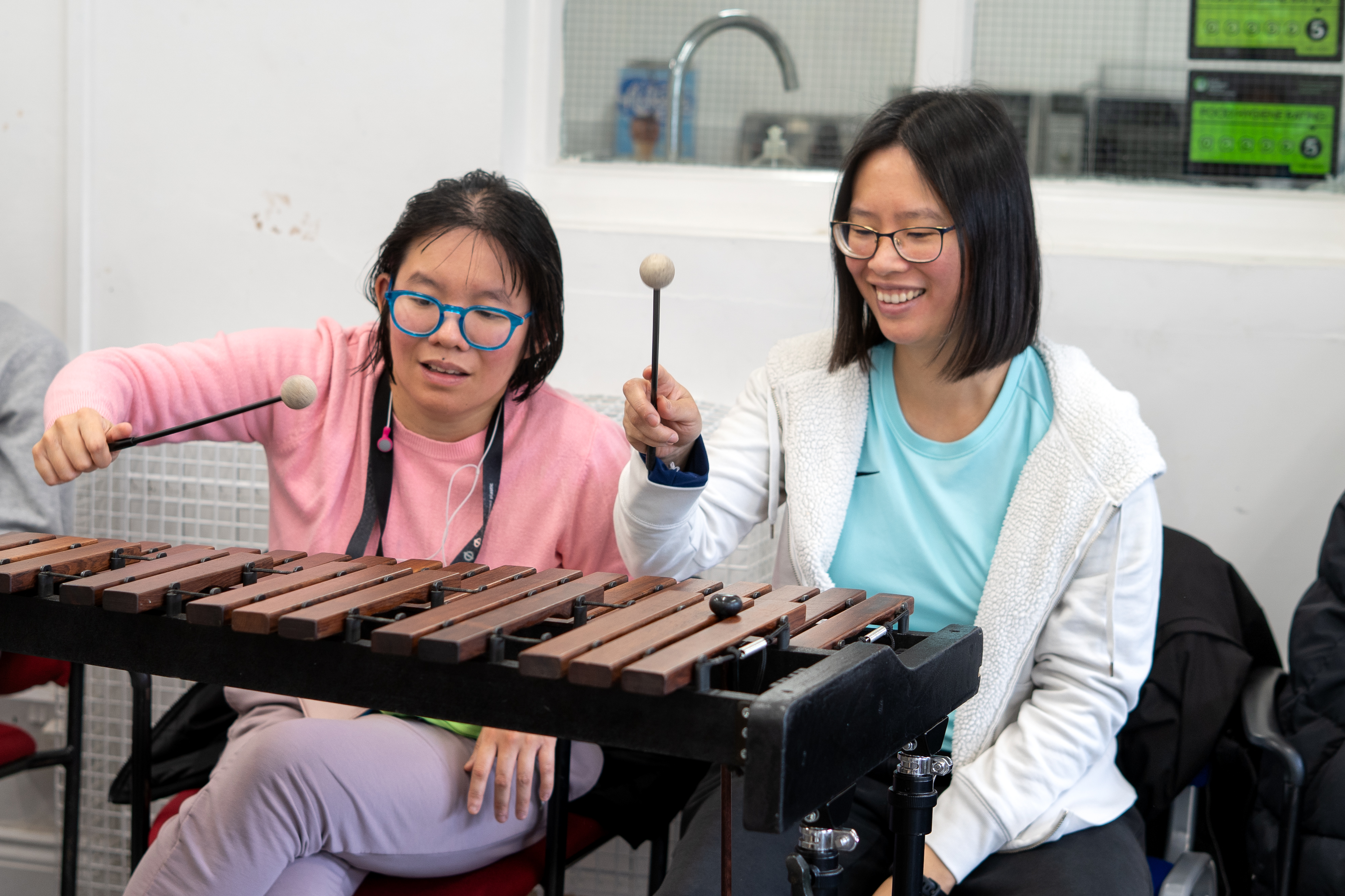 Our first workshop took place at Brent Mencap, where the RPO Resound team offered a Sound Sanctuary session for disabled adults and their carers. Led by musician, educator and leader of creative and collaborative music making, Sigrún Sævarsdóttir-Griffiths, participants experimented with a variety of instruments to collaboratively compose two songs across the morning. This month, the group were inspired by the season of autumn, with their lyrics referencing the changing colours of leaves, and cosy autumnal rituals like making a cup of warm tea.